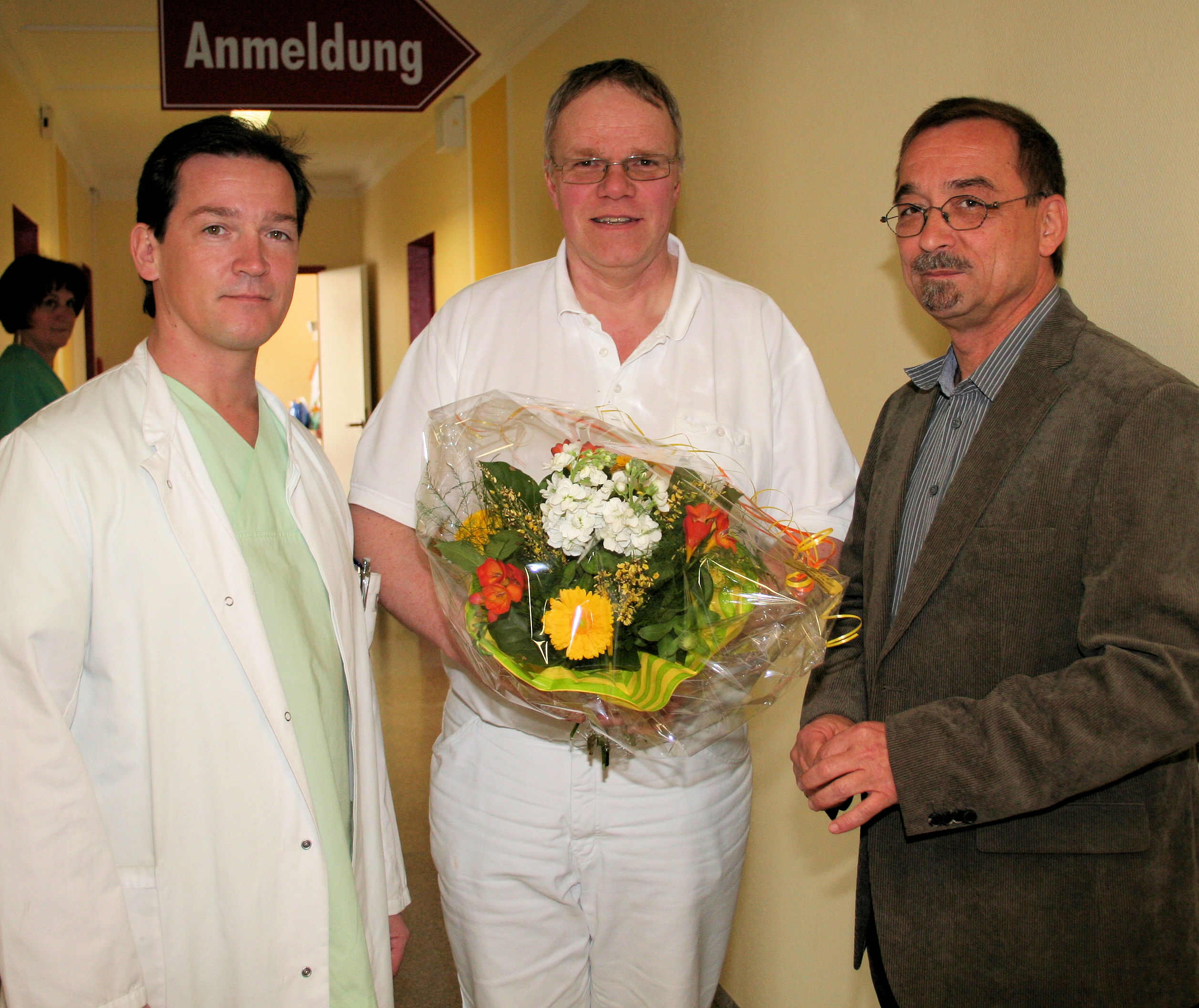 Die ersten Gratulanten waren Dr. med. Sven Fischer, Ärztlicher Direktor und Wolfram Kullik, Geschäftsführer des Klinikums.